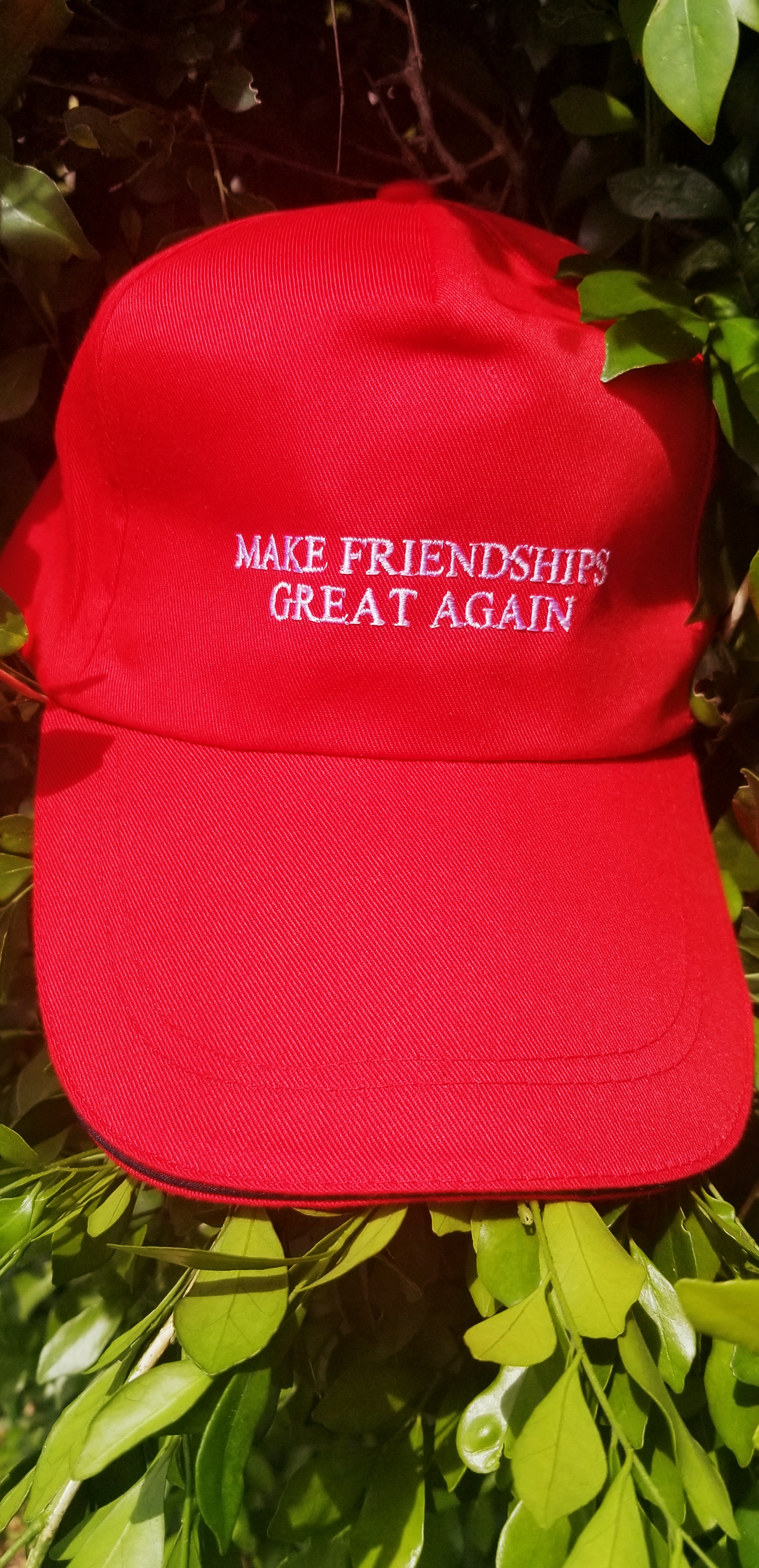 We’re friendly, but we are also BOLD!! Make a statement with the Make Friendships Great Again hat and stirrup a great conversation along the way! Adjustable strap in the back to fit most.